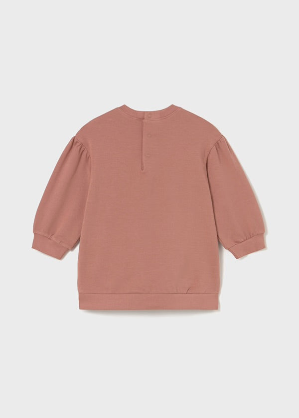 Long sleeved Dress for baby. Round neckline. Back snap closure. Warm fleece fabric, perfect for the cold months. Gathered design. Decorative elements: Print.