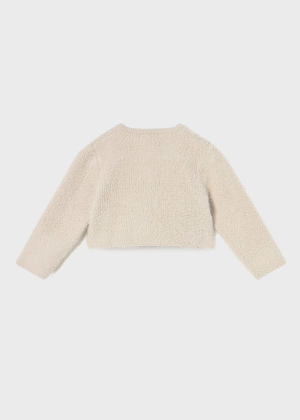 Long sleeved Cardigan for baby. Button fastenings down the front. Soft and smooth outer faux fur fabric.