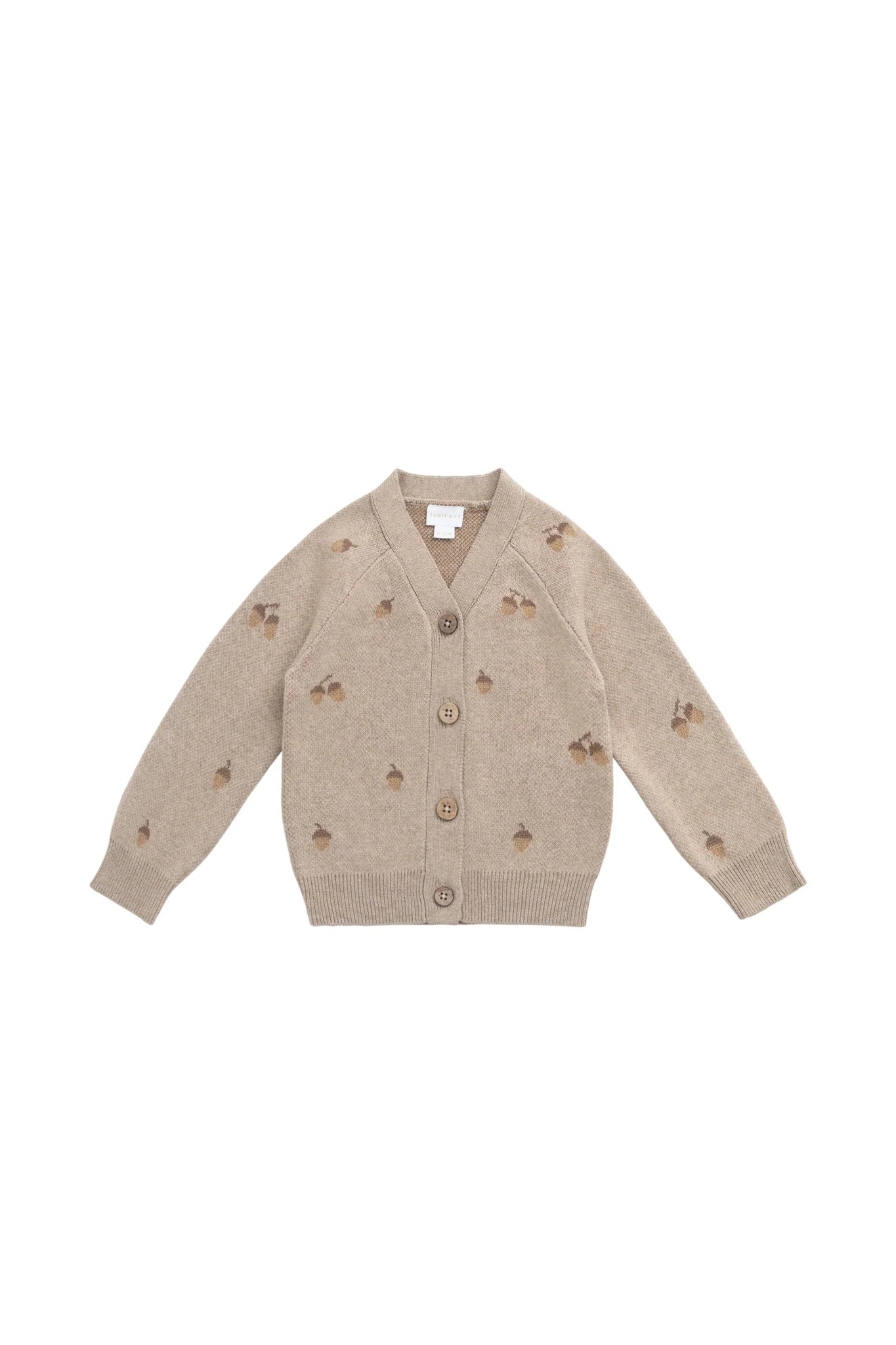 The Easton Cardigan in Forest Acorns Cashew Marle is a beautifully oversized knit designed for comfort and charm. Featuring a soft brown-taupe base with a playful acorn pattern, this cardigan is finished with coconut buttons, ribbed cuffs, and a ribbed hem for a snug and stylish fit.