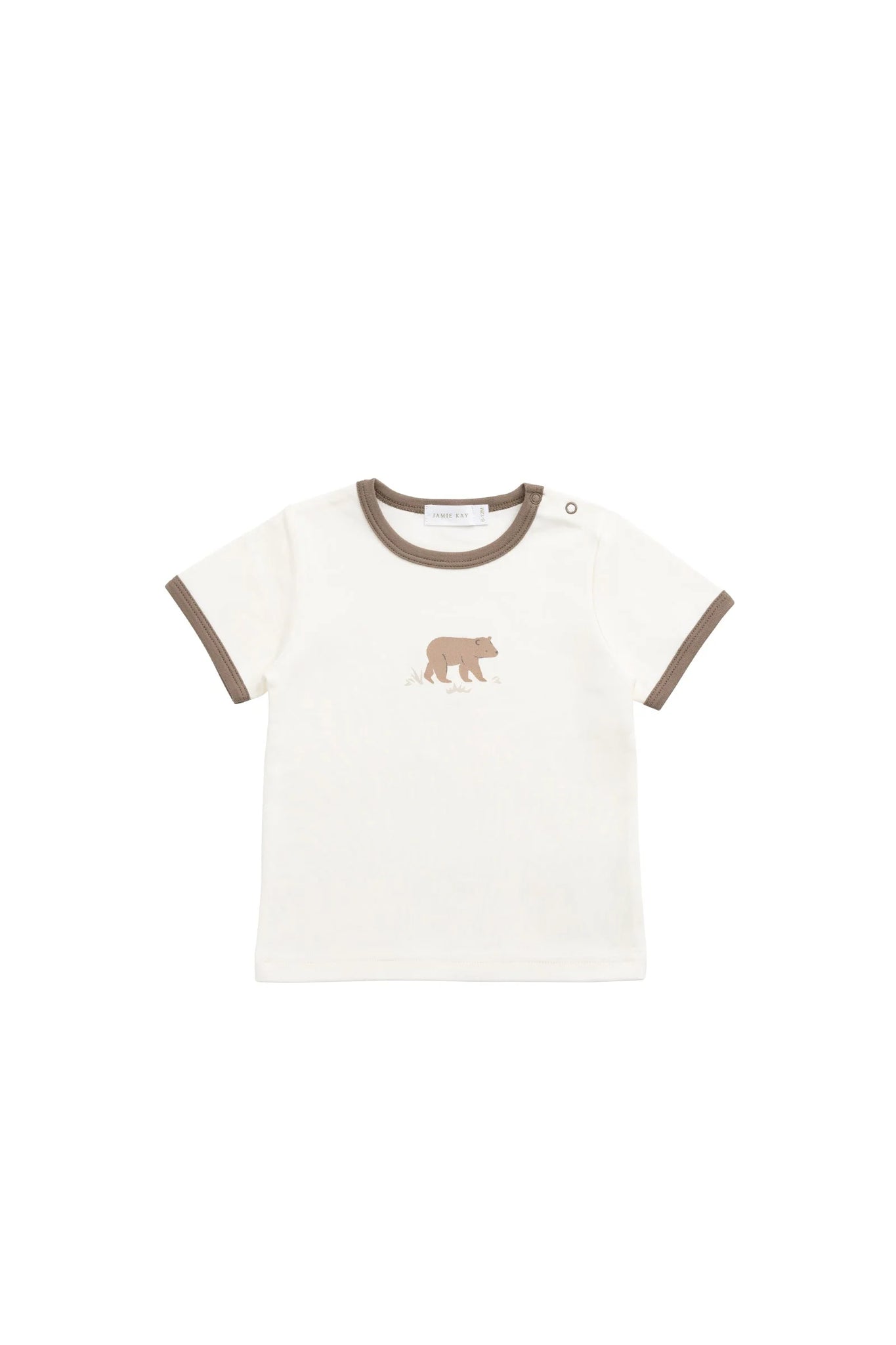 Crafted from ultra-soft 100% Pima cotton, the Erik Tee in Buddy Bear Cloud is a sweet everyday essential for your little one. Featuring a charming bear illustration on the front and contrast trim around the neckline and sleeves, this tee blends comfort with playful style. Its breathable fabric and relaxed fit make it perfect for layering or wearing solo on warmer days.