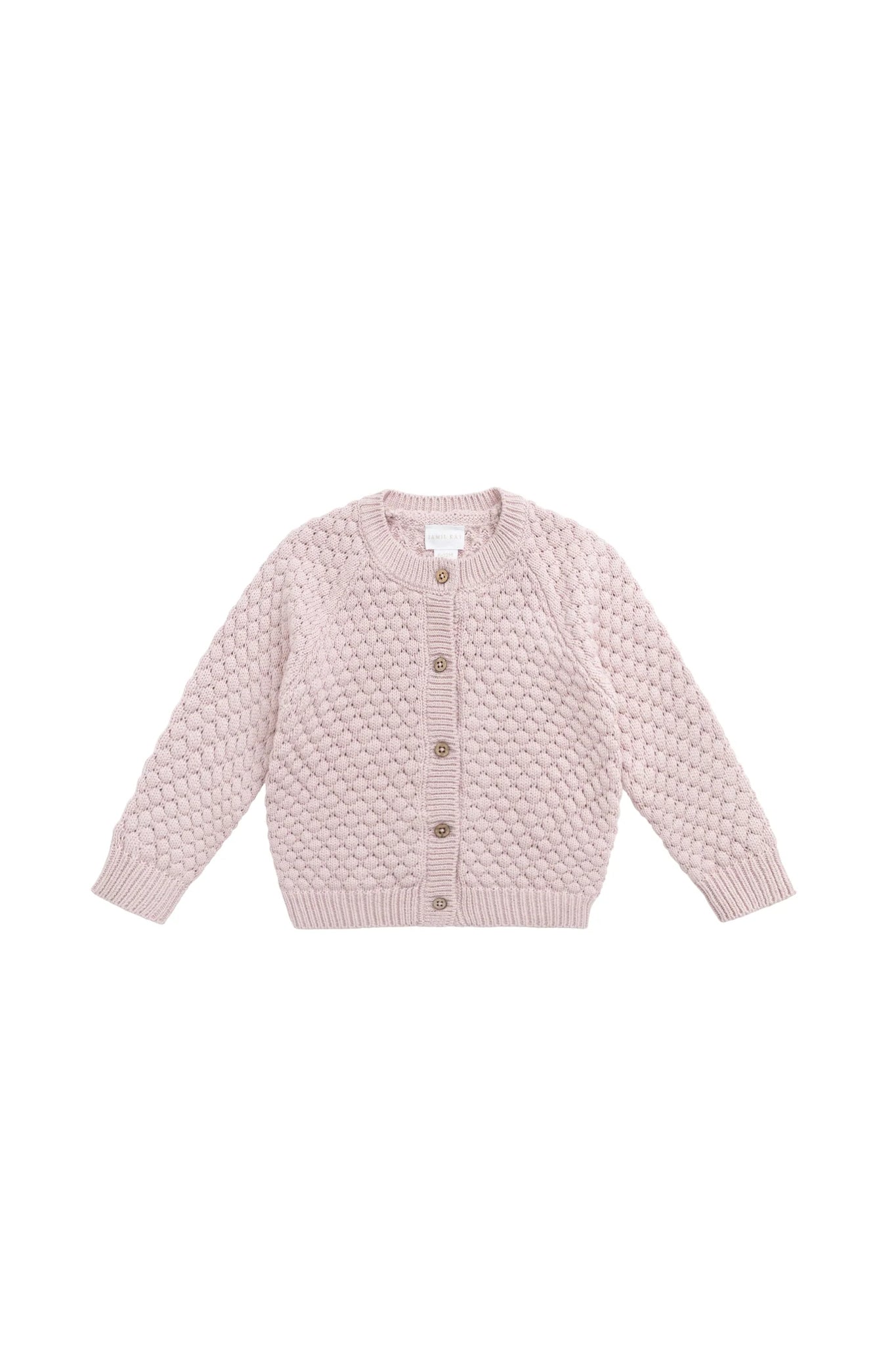 The Maple Cardigan in Pastel Pink Marle is a beautifully textured knit designed to bring warmth and softness to your little one’s wardrobe. Featuring a gentle marled finish and delicate buttons down the front, this cardigan offers timeless charm in a versatile, gender-neutral silhouette.