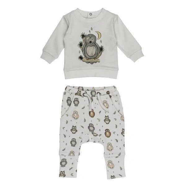 - features a soft elastic waistband on pants, with tapered ankles for a comfy, sporty look