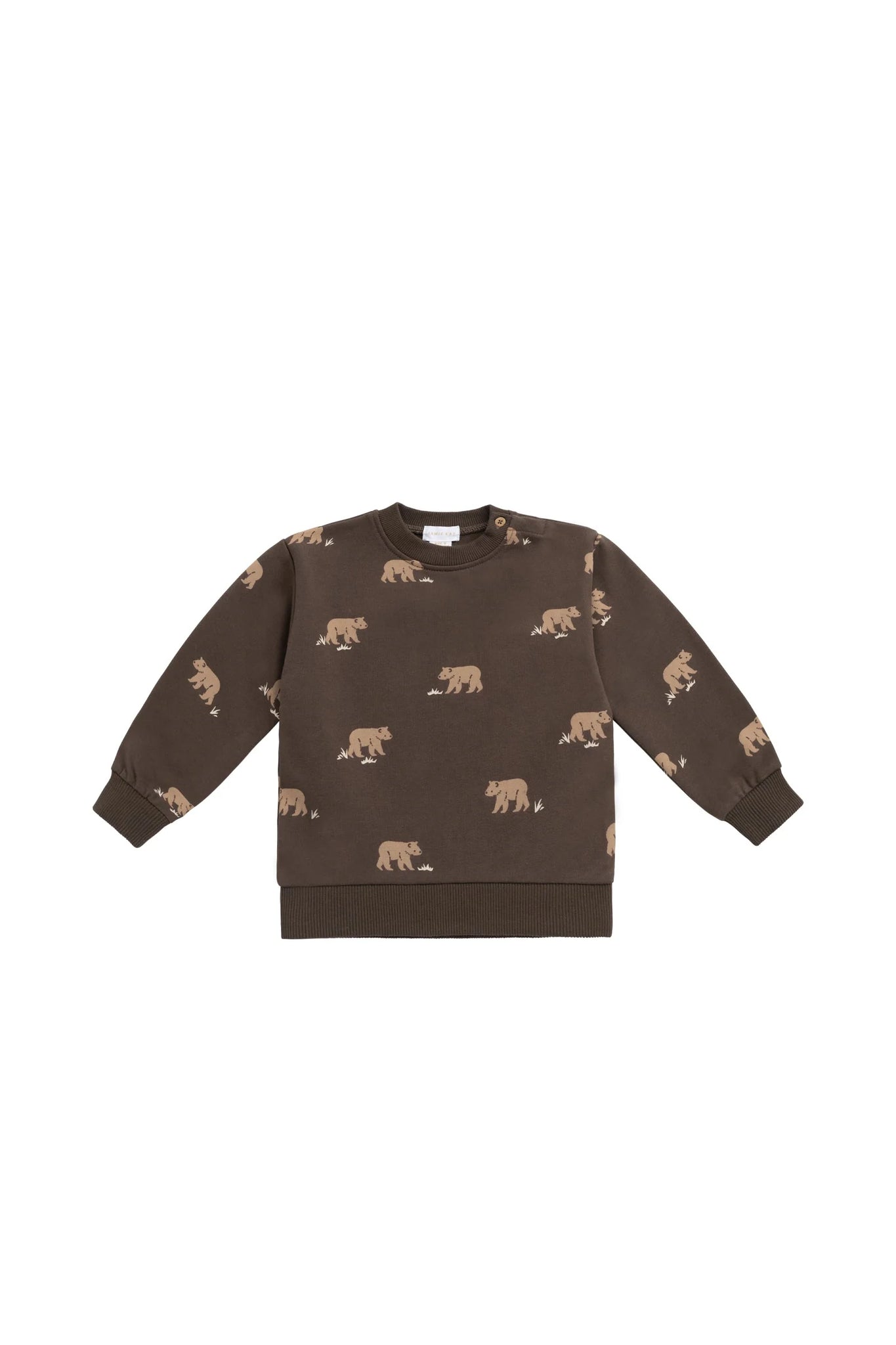 A playful and cozy essential, the Peyton Sweatshirt in Bear Buddies Canteen features a warm brown base with an all-over print of adorable beige bears walking. With ribbed cuffs, hem, and neckline, this sweatshirt offers a snug and comfortable fit—perfect for layering on cooler days.