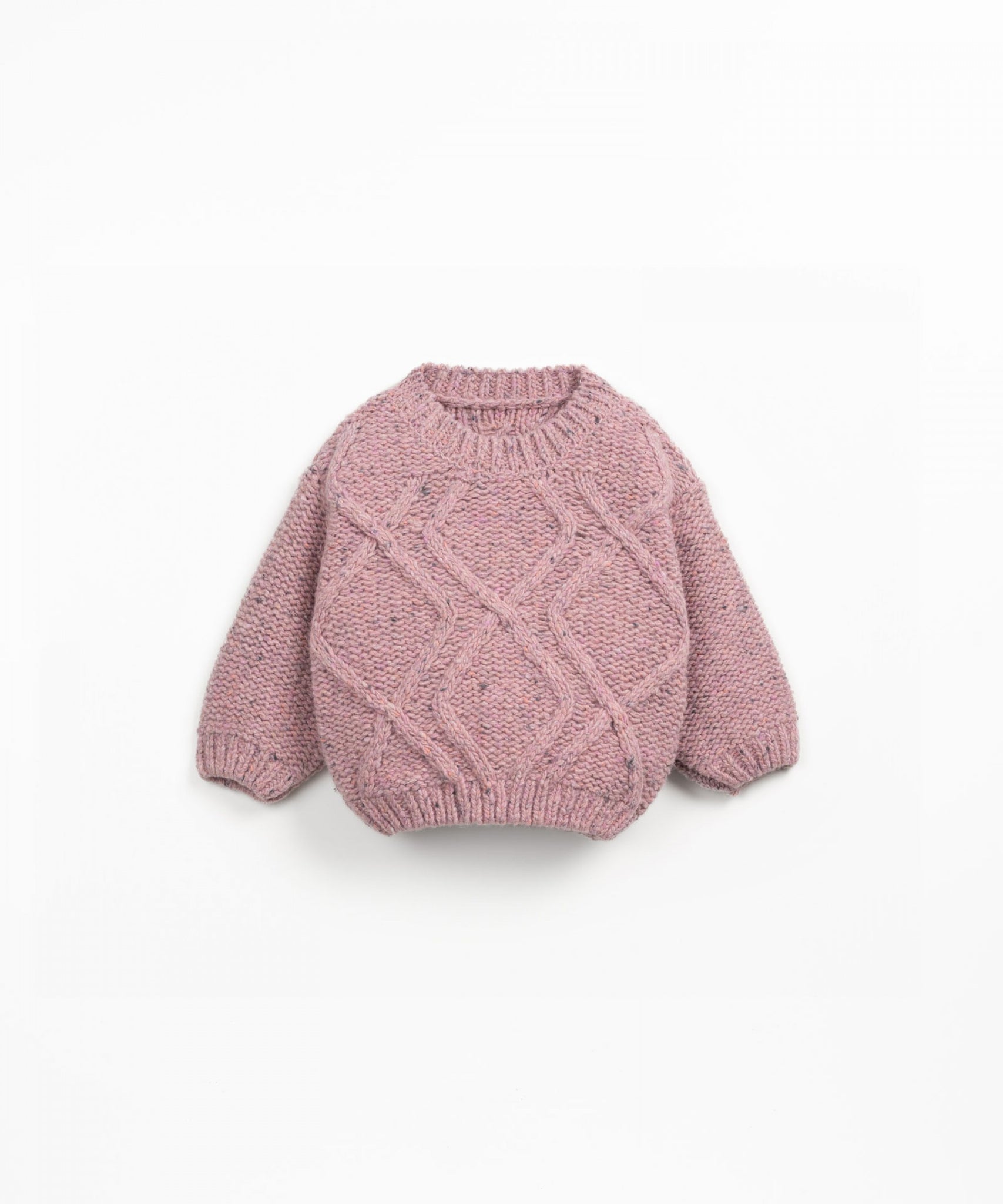 This knitted sweater is made from a mix of recycled wool, wool and viscose, in Light Pink color. It is a model with long sleeves and a round neckline.