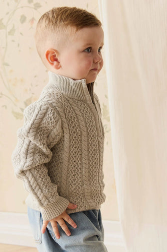 Clyde Half Zip Jumper - Light Grey Marle