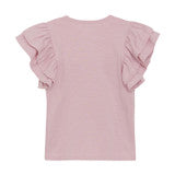 Short-sleeve T-shirt with a cute cherry motif on the chest. The T-shirt features beautiful frill sleeves, adding a feminine and charming touch.